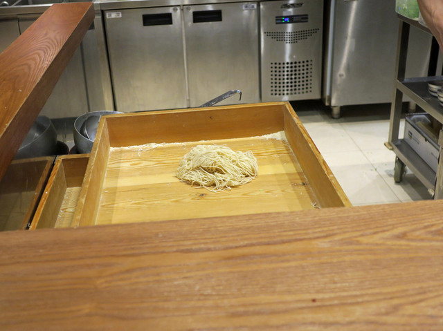 加水の少ない細ストレート麺は小麦のせいか水のせいか少し微妙な印象。