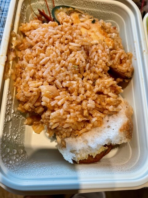 私のセレクトは「海鮮リゾット」。やはり大きな海老やムール貝、ヤリいか、たこ、あさりなどが