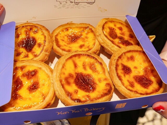 エッグタルトは温かい状態での提供があり、6個/箱単位で購入できるとのこと。