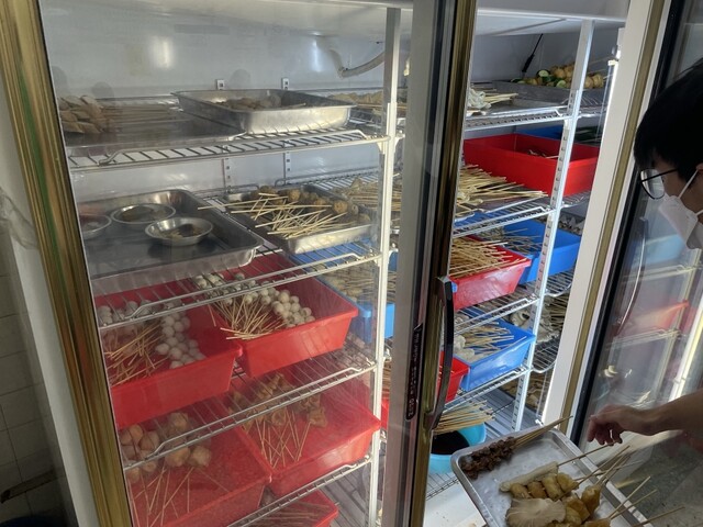 鍋料理で不思議なスープの中に、串の刺さった具材(お肉、海鮮、野菜などいろいろありました)を選んで、少し煮込んでから食べるタイプでした。