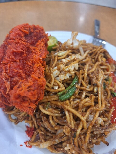 焼きそばにスパイシーなフライドチキンが相性が良く美味しかったです。