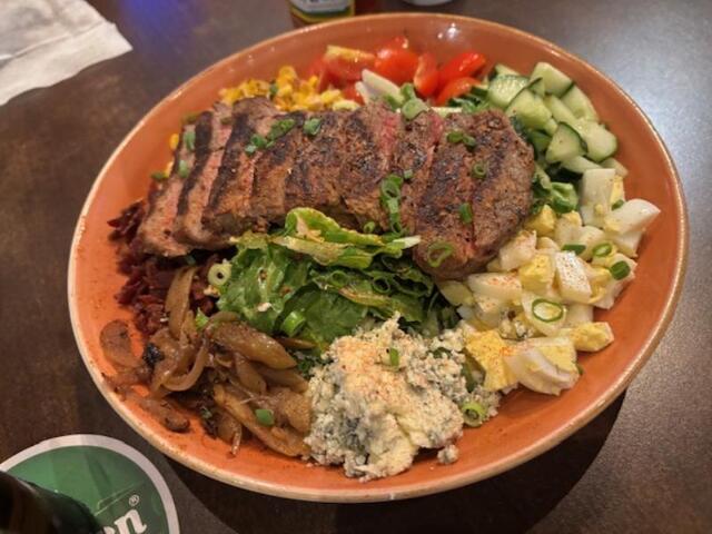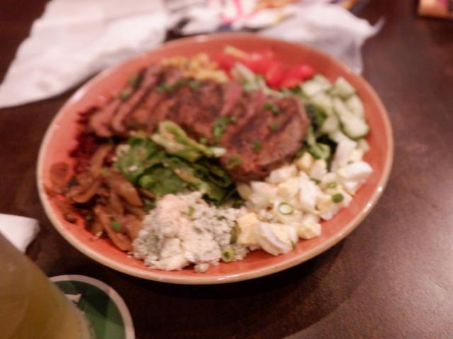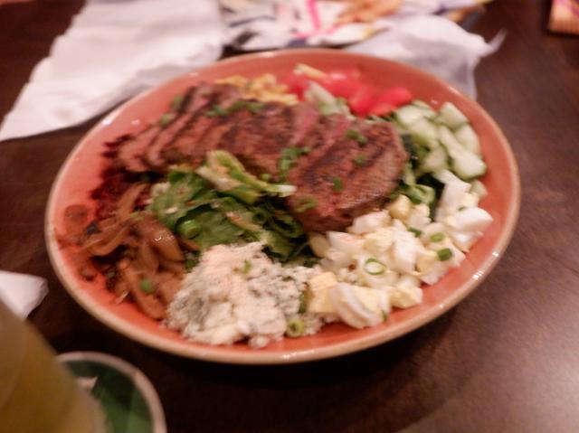 孫娘はステーキ・・フジタステーキコンボを・・赤身ステーキで食べやすくカット、サイドメニューのサラダ+がかなりのボリュームです。
