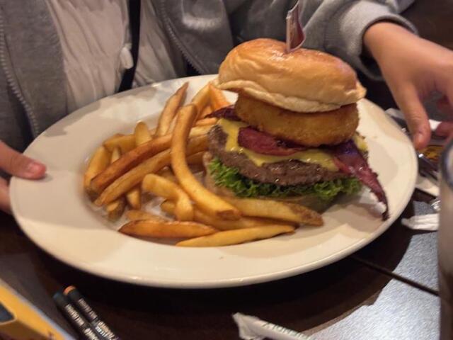 孫息子はキッズメニューからベーコンチーズバーガー+フレンチフライを選択。