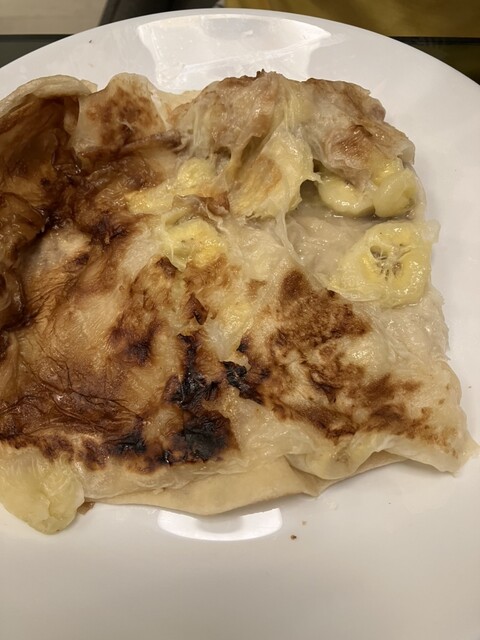 子供たちはロティチャナイ。100円しない。ちゃんとその場で焼いてくれるのでおいしい。具なしカレーは無...