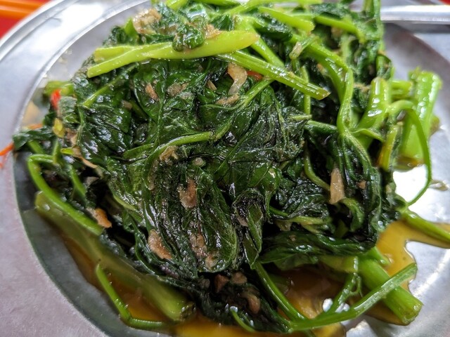 メニューの写真から指差し注文したので何かはわかりませんが、たっぷりの野菜が油でガンガンに炒められています。調味に魚醤か何なのか、海の幸を発酵させたような味わいが感じられるのが特徴的。