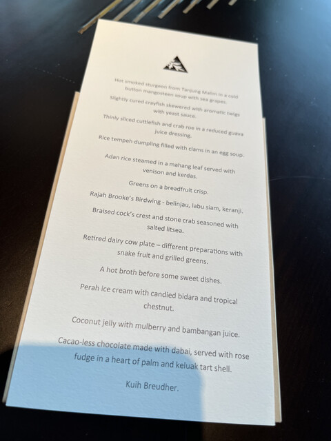 このメニューは、マレーシアの食材や伝統料理を現代的かつ芸術的に再構成したコ...