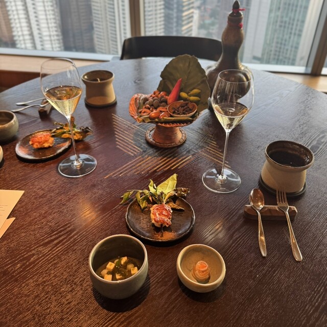 市内中心部、嫌いな超高層レストラン48階ですが、アジアTOP50かつ星付、国内No.1レストラン、てなことで来店です。人気店ゆえか1人予約だと強制2巡目21時スタート、でも平日金曜、満席にはなっていま...
