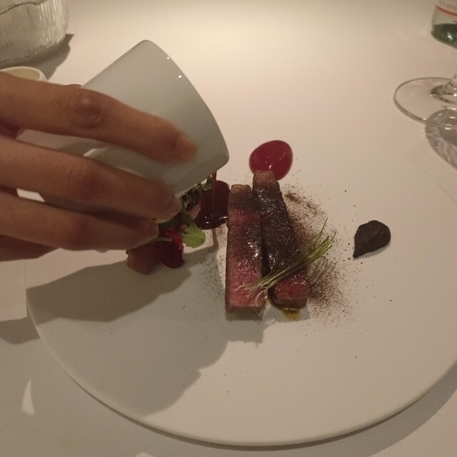 目の前でソースをかけて仕上げらるのはA5 Miyazaki chateaubriand。