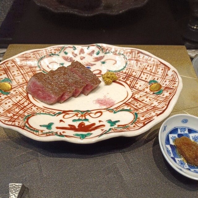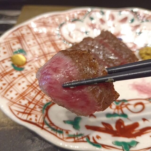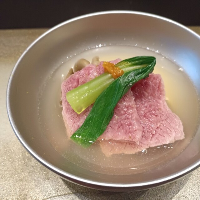 次は牛のフカヒレの握り。シャリは赤酢主体。