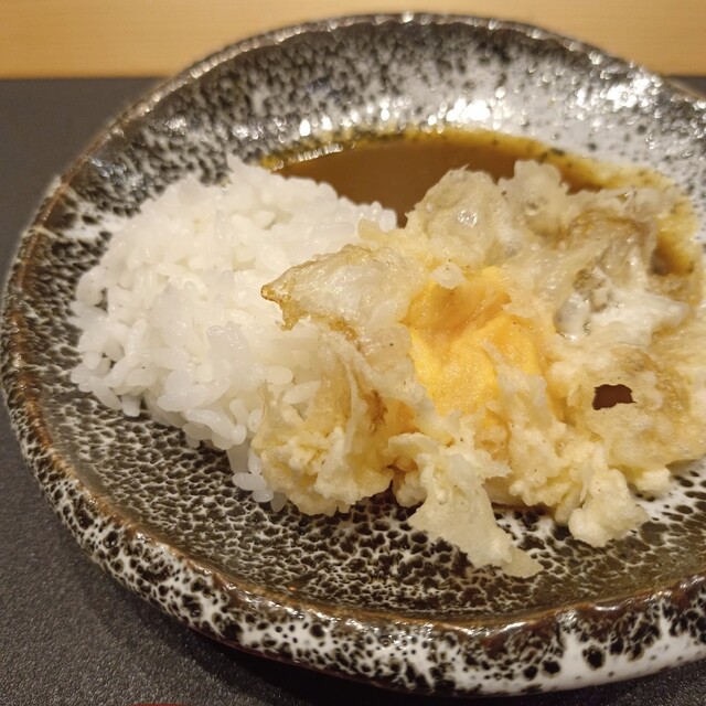 ほろほろとろとろのお肉がカレーの中に入ります。玉子天もいい感じ。