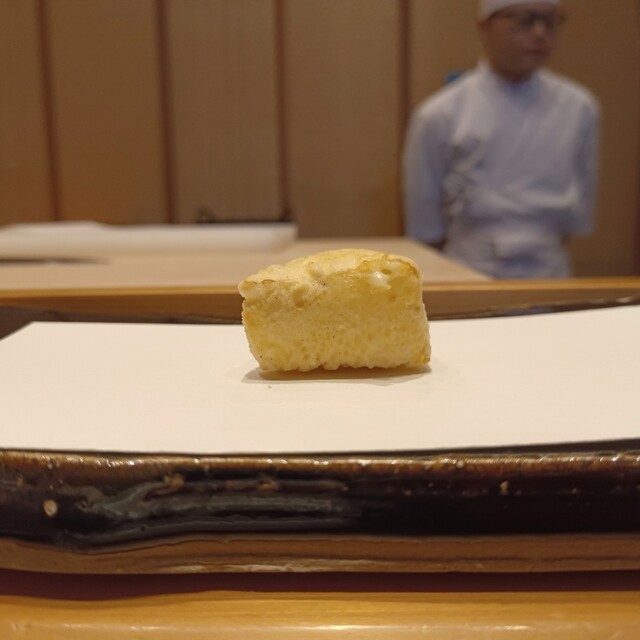 目の前では、お椀にズワイ蟹を盛り付けられ、上からトリュフをスライス。