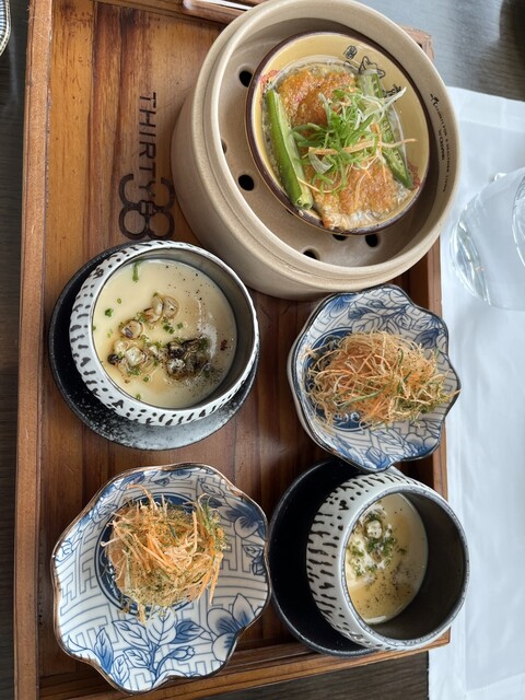 最初に出てきたセイボリー系の美味しさに驚く。次の皿は...