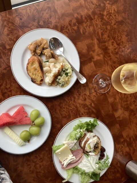 ホテルに到着後、18:00から37Fでハッピーアワーをやっています。料理の種類は多くないですが、しっかりお腹に溜まるものもあり夕食分になりました。お酒もウイスキー、赤ワイン、白ワイン、ビールが飲み放題...