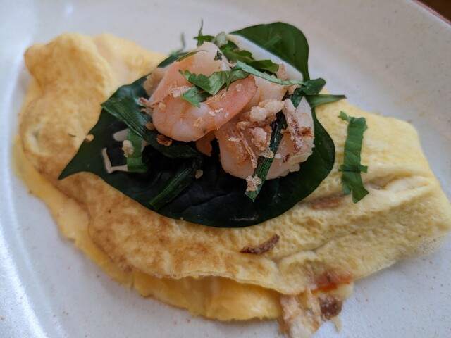 JPナントカという、当店の名前を冠したオムレツ。色々と具材の挟まったエビトッピングの卵料理であり、「Thirty8(サーティーエイト)」の卵料理と比べると段違いのレベルの高さです。