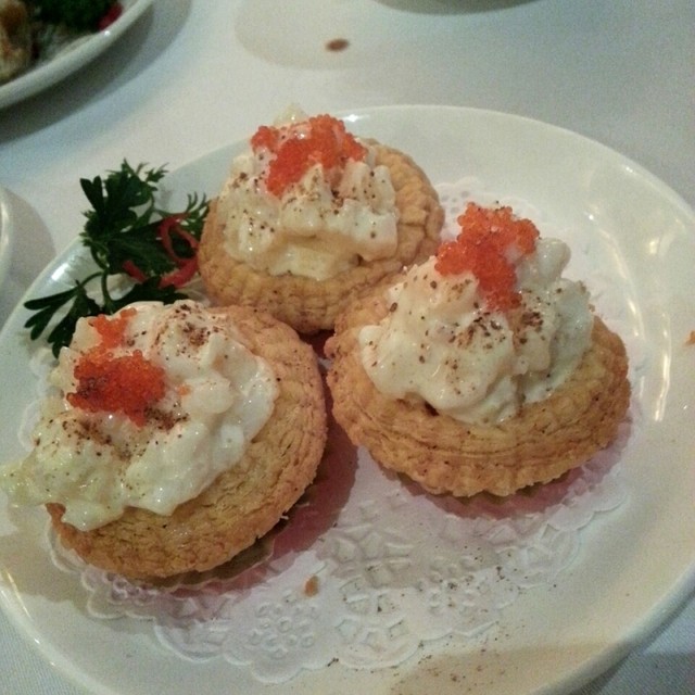 なんていうメニューだったのかさっぱりわからないのですが、これは、カニだと思いますよ。そこにフルーツが入っている。なんていう名前かなぁ?メニューを見直してみたのですがわかりません。