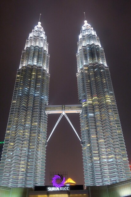 夜にはツインタワーのライトアップまで見に行った。