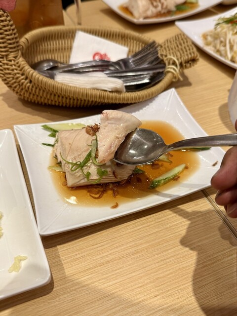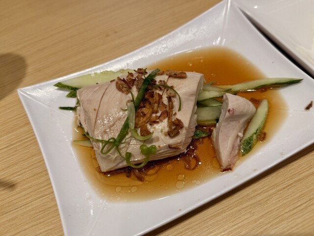 先ずは「蒸し鶏」から〜鶏は柔らかくレア食感!肉汁ジューシーで味もしっかり染みており美味しい☆看板メニューのチキンライスも最高!炊き加減もいい塩梅〜あっさりしながらも、深みある味わいが蒸し鶏とナイスマリアージュ♡チェーン店と侮るなかれ「早い安い旨い」☆ぜひ試してみてください!ごちそうさまでした。