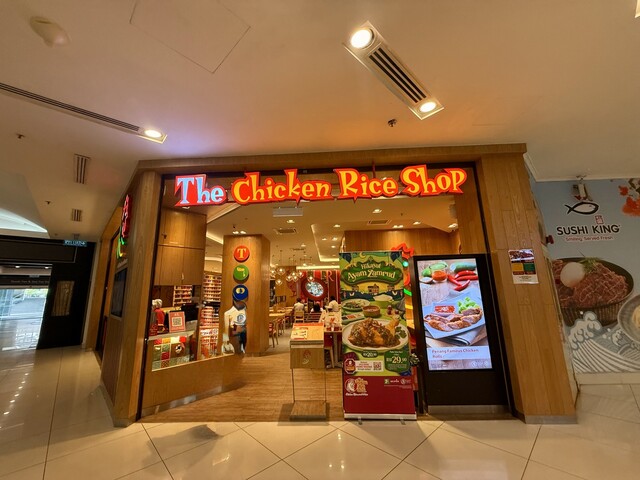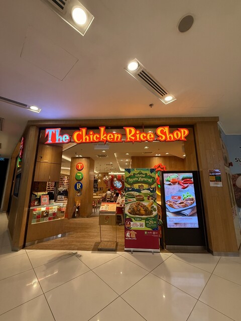 マレーシア発祥のチェーン店「ザ チキンライス ショップ」は、ホーカー(屋台)のように、乳白色の蒸し鶏やきつね色のローストチキンが、丸ごと吊るされ食欲をそそります!蒸し鶏と鶏スープで炊いたご飯、スープのセットが一般的!注文したのは、1番人気「チキンライスセット」です。