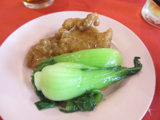 白身魚のフライとチンゲン菜の炒め物。