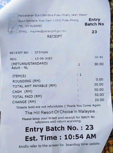 ※11〜13枚目は山頂からの景色。14枚目は山頂近くの洋館。15〜17枚目は山頂近くのヒンドゥー教寺院。18〜19枚目は山頂の公園と大砲。20〜22枚目はケーブルカーのチケット(30MYR)。