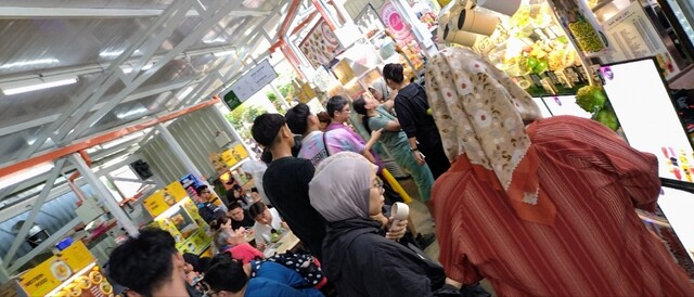 マレーシア・ペナン島・ペナンヒル。ジョージタウンから西へ9Km程にある丘陵地帯「ペナン・ヒル」(標高833m)の山頂近くにあるフードコートです。本来のフードコートが改装工事中の為、狭目の臨時施設のなので、観光客で凄く賑わっていました。安定のクアラルンプール式焼きそばですね(^∇^)ノ♪