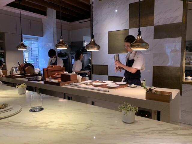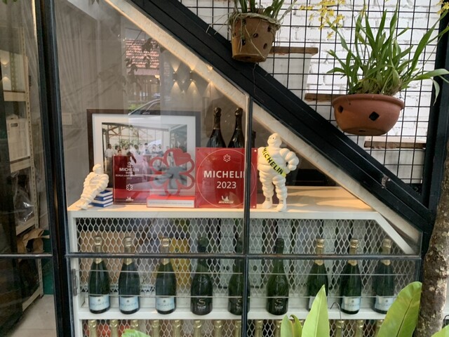 ペナンNo.1レストラン、横丁入り外壁トタンながら、センスある一角にあります。受付のマダム感じよく、マレーシアで初めてサンペレグノが最初からキンキンに冷えてます〜テーブルとカウンターありで、1人予約も...