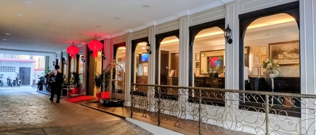 キンバリーホテルのオリエンタルスイートの扉を開けた瞬間、外の喧噪がふっと遠のき、落ち着いた木の香りに包まれる。高い天井のシーリングファンが静かに空気を撫で、素足で踏んだ磨き込まれたフローリングはひんやりとして心地よい。籐のチェアは手触りが少しざらりとして温かく、ガラスのローテーブルには街歩きの余韻を映すように、窓辺の光がやさしく揺れていた。浴室の白磁タイルは指先で触れるとしっとり冷たく、深いバスタブに身を沈めれば、昼間の蒸し暑さと汗が一気に流れ去っていくようだった。窓を押し開けると、赤茶色の瓦屋根の向こうに、コロニアル様式の建物が静かに佇み、遠くで鳥の声が空気を震わせていた。