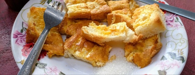 Roti Telur (ロティ・テロウ)は、マレーシアで親しまれている「ロティ」と呼ばれるインド風の薄焼きパンの生地に卵を加えて調理したものです。いわゆる、フレンチトースト。