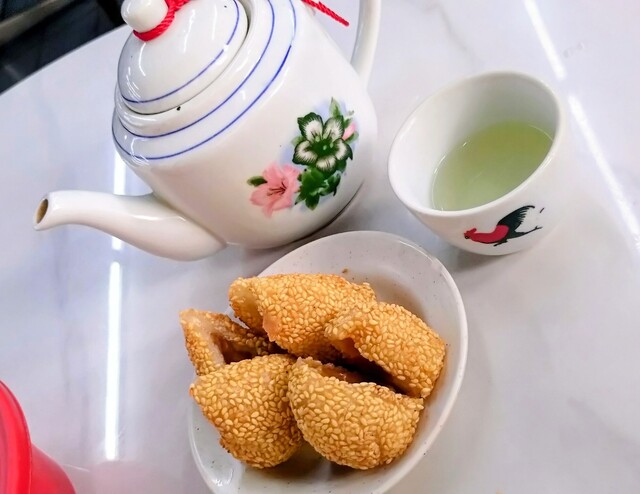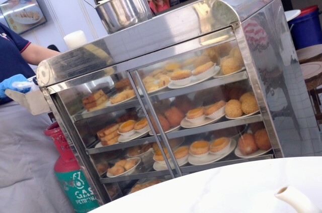 お茶やドリンクを飲みながら、おばちゃん達が運ぶワゴンが来るので食べたい点心や揚物があったら追加注文⇒