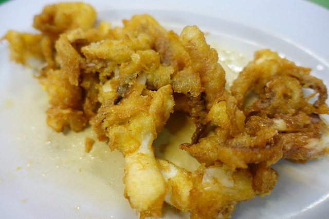 まずはイカを揚げたもの。テンプレには卵がどうのこうのと書いてあったのですが、卵らしさは微塵も感じられませんでした。まあ、日本の居酒屋のイカリング的な味わいです。
