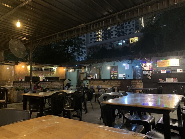 ガレージのような造りで部分的には屋根がなくオープンエア、一部は屋根が付いているけど、風通しはスースーという感じです。この度マレーシアに行ってみて分かったのですがかなりの暑さと湿気です。ガレージ造りのお店は気候に合っているような気がいたします。