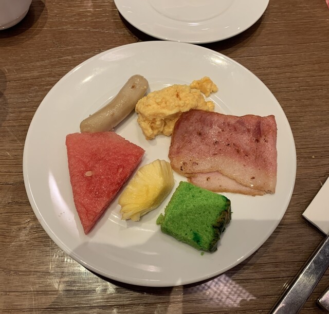 • Amari Johor Bahru - パイナップル、スイカ、チキンソーセージ、スクランブルエッグ、ターキーベーコン、パンダンパウンドケーキ
