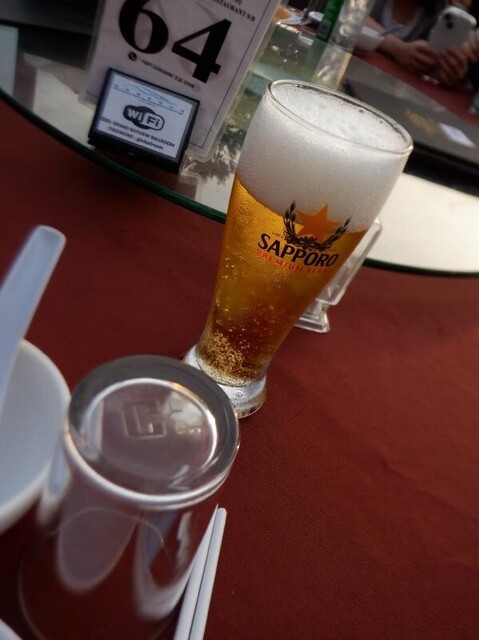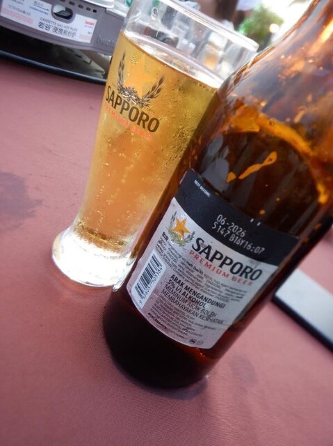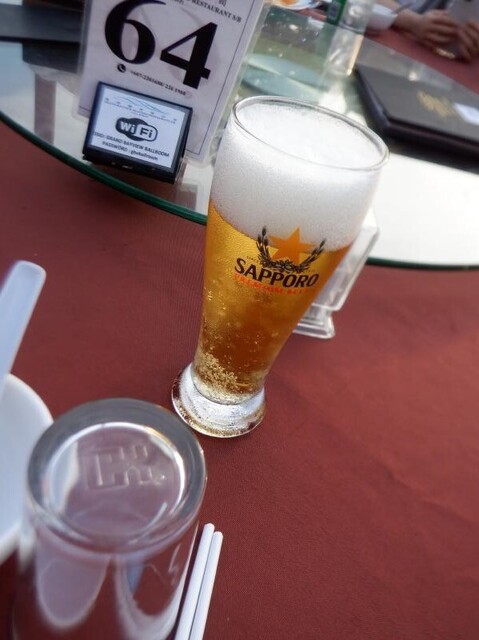 先ずはドリンクをこちらビールは633の大瓶・・・私はサッポロ、他の方はカールスバーグをオーダー、子供達はスプライトとオレンジジュースを・・