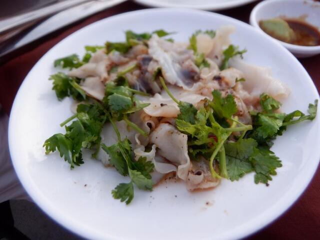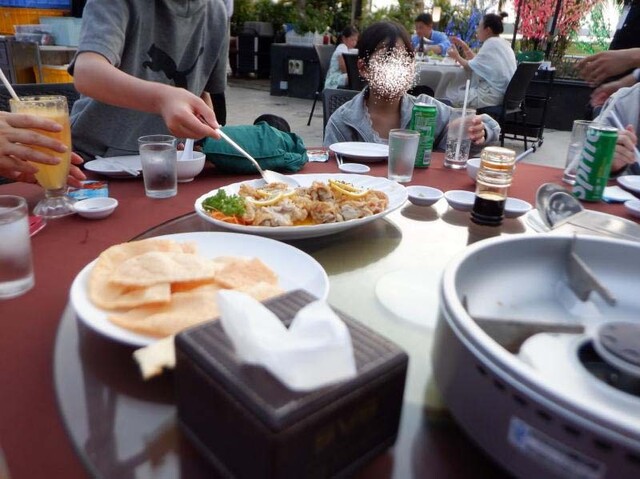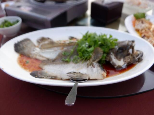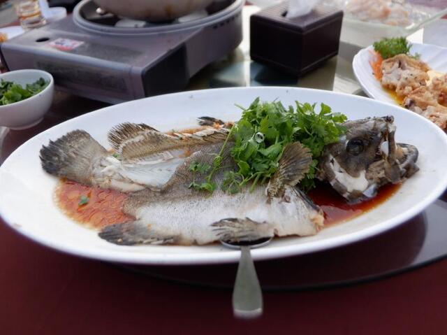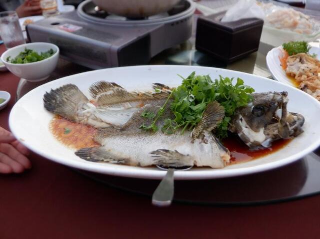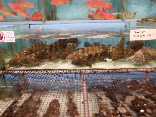 以前香港で良く食べたガルーパ・・ガルーパは、ハタ科の魚の総称で、特に東南アジアや中国料理で高級食材として扱われることが多い。英語ではGrouperと呼ばれますが、ポルトガル語風にガルーパと呼ばれることも。マレーシアでも高級魚として人気があり、蒸し料理や揚げ物などで食べられることが多い・・・今回は7人だったので水槽の中の大きいサイズを選択、蒸し魚でオーダー!