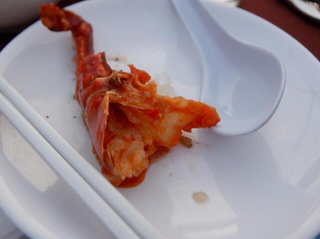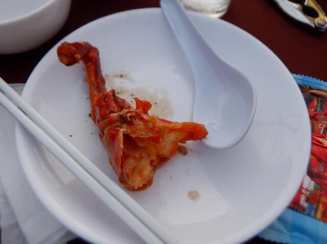 四品目・・・待望のチリークラブ登場テンションアップ・・まずビニールの手袋を・・・手づかみでほうばる・・このテースト感が実にいいです。