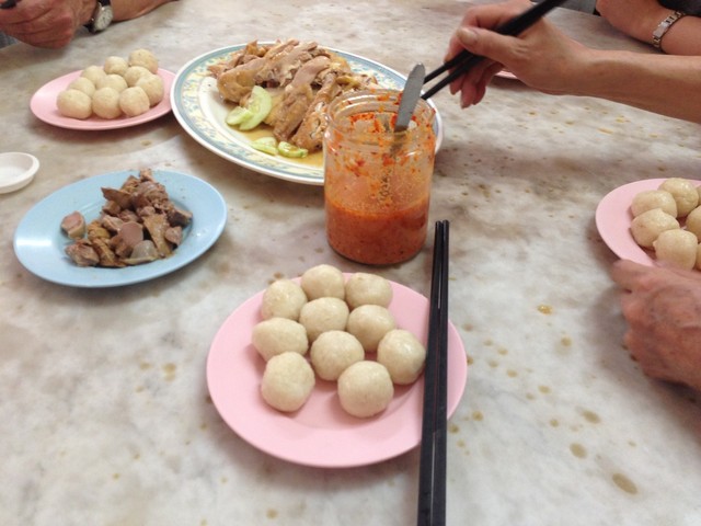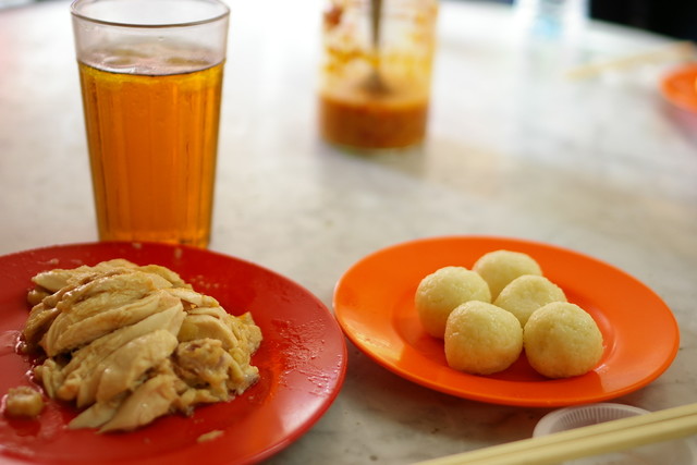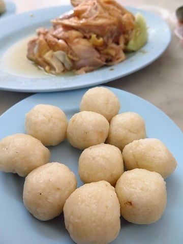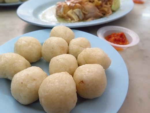 この辺りのチキンライスはご飯がお団子状にまるめてあ...