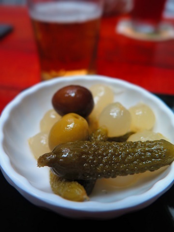 自家製ピクルスをアテに