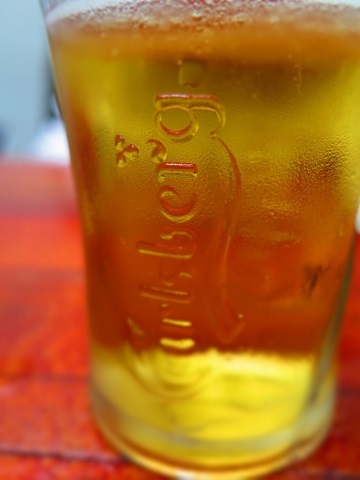 ワインクーラーみたいなものに氷を入れたなかに小瓶のカールスバーグ