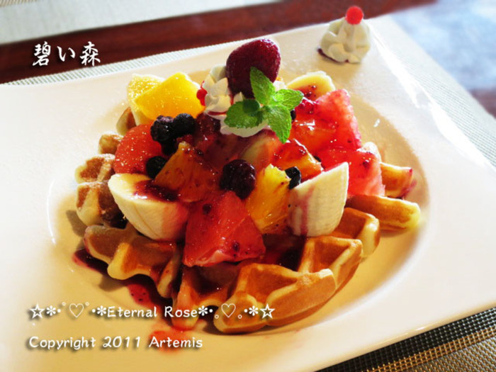 ミックスフルーツワッフルは、豪華で、ボリュームたっぷりで、