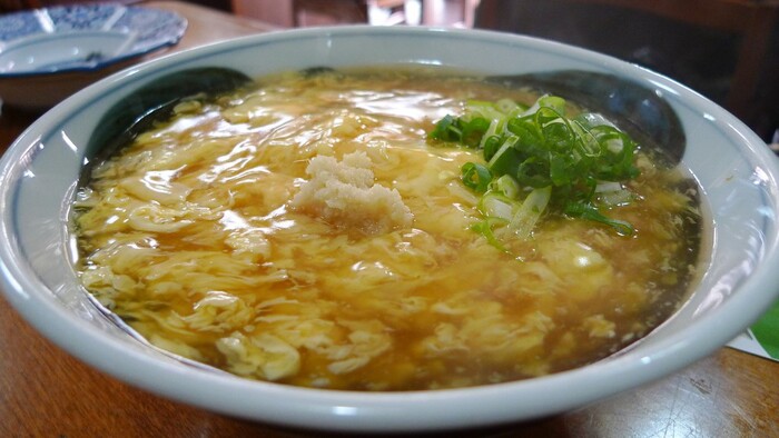 体が温まる「けいらんうどん」は、風邪をひいたときや胃腸の具合が良くないときの定番で、寒い冬の日には嬉しいメニューのひとつです。