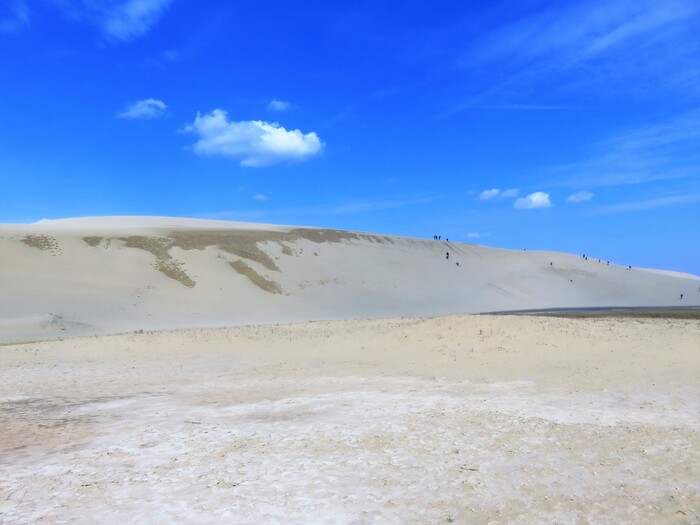 鳥取砂丘を見おろす丘の上。梨のソフトクリームをいただきました。