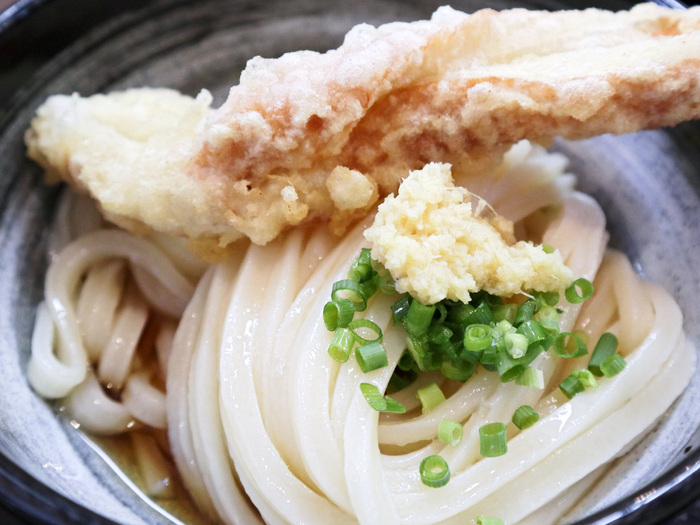 程好いコシと弾力を感じるうどんで、新たにOPENしたお店ですが古き良き讃岐うどんのような嬉しく美味しいうどんでした。ぶっかけ出汁も美味しい味でした。一口飲むと鼻に抜ける風味から美味しく感じ、うどんに絡めて食べると美味しさをより現実化させました。捻りのあるうどんにはぶっかけ出汁が美味しく絡むものだと改めて思いました。ちくわ天も美味しかったです。手綱切りをして揚げたちくわ天で、ちくわ天の天ぷら衣はぶっかけ冷の薬味としても美味しく重宝しました。