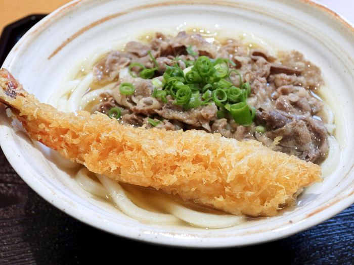 【スタミナうどん(肉うどん+えび天ぷら)】