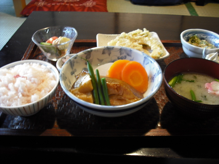 小鉢も茄子の煮びたし、野菜の天ぷら