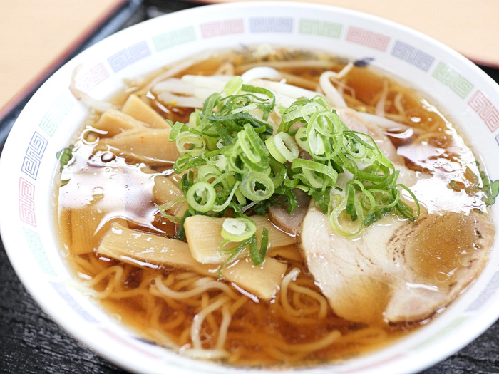 スープは典型的な醤油味の馴染みやすい味で美味しく、麺は中細ストレート麺の類になると思います。醤油味のスープがいい感じに絡んでいました。盛りは、叉焼、もやし、メンマで、ねぎは青ねぎでした。叉焼は巻き叉焼だと思いますが食感が好みのタイプでした。もやしはしゃきっとしていてこのてのラーメンに盛られているもやしらしいもやしでした。メンマ…板形状のメンマで好みの食感なのですが、ちと量が多いように思いました。この量がデフォ盛りなのか、手が滑ってどばっと入ってしまったのか分かりませんが、メンマラーメンでも通用するような量だと思いました。