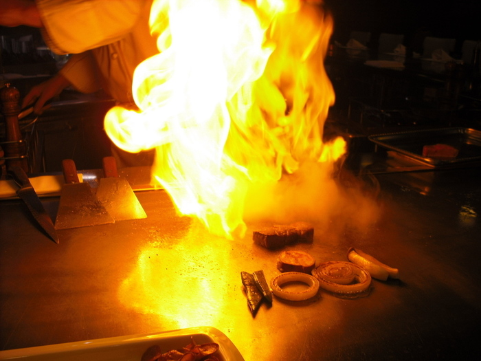 フランベされたステーキ、