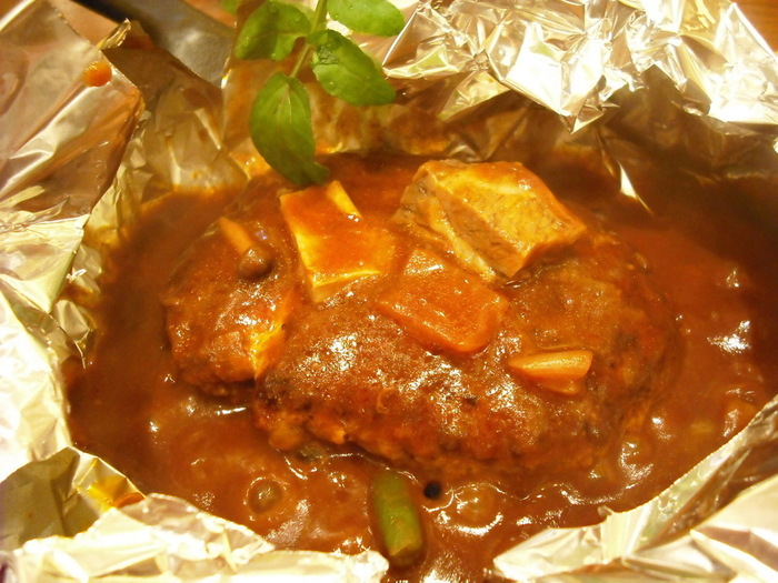 現れます。ソースはまさにグツグツと