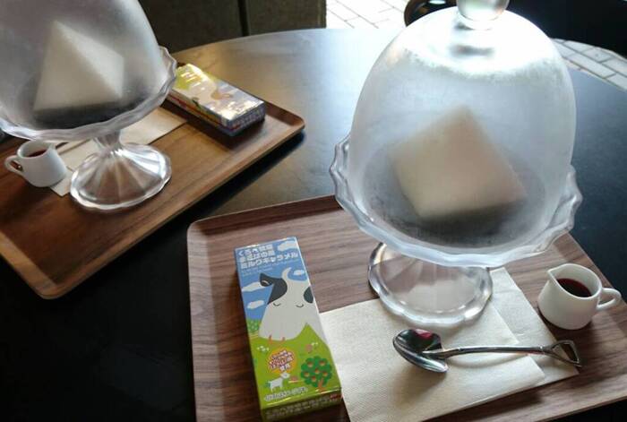 運ばれてきたのは、和風な器に茶色い氷の入ったグラス。そしてほんのり温かいミルク。