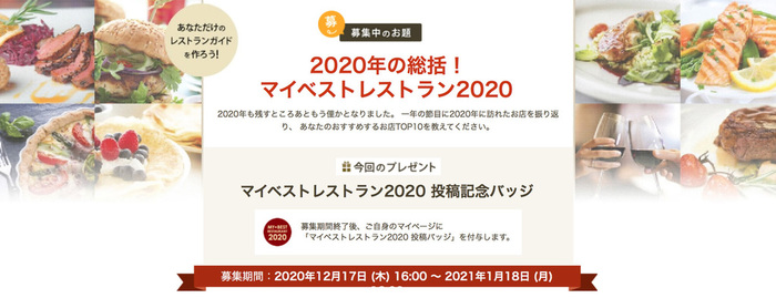 食べログの募集に沿って 「 マイベストレストラン 2020 」