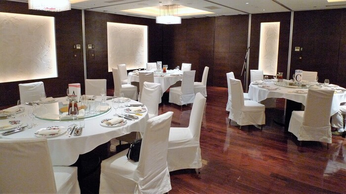 ランチや夜の一般営業は1階のレストランで、2階以上が宴会場や結婚式場、個室になっているようす。この1階レストランフロアーだけでも100席以上はありそうで、全館合わせての最大収容人数がなんと1,400人!